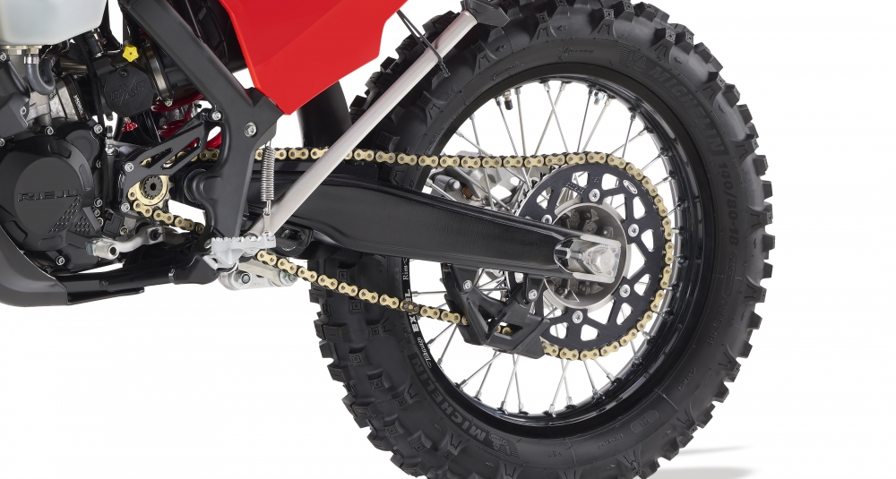 Motor Yeni 2 zamanlı tek silindirli TFI (Gaz Kelebeği Gövdeli Yakıt Enjeksiyonu) motor Enjeksiyon Yüksek ve düşük devirler için 2 özel ve farklılaştırılmış Bosch enjektörü Hacim 298 cc Çap ve strok 72 x 72,52 mm Marş Sistemi Yeni entegre elektrikli marş sistemi Soğutma Sıvı soğutma + Elektrikli fan Güç Haritaları 3 farklı güç haritası (Yarış, Orman ve Islak) Şanzıman 6 vitesli şanzıman Debriyaj Yeni yağ banyolu çok diskli diyaframlı debriyaj Emme Sistemi VForce 4 kutulu kamışlı karbüratör Egzoz OXA tarafından üretilen Rieju Power Racing
